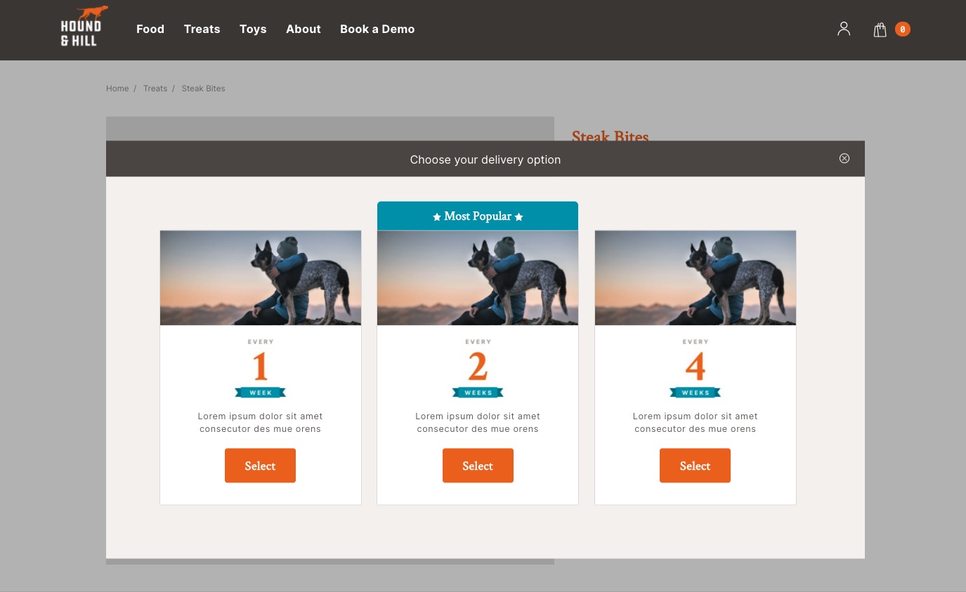 When multiple choices are required for a subscription product, the workflow makes all the difference to avoid confusion and lost sales. When choices are presented in steps, the customer will pick an option before moving onto the next step. To optimize the workflow, break up the options to present them in a clear, visually appealing manner while providing the relevant information needed to help customers along the buyer journey.